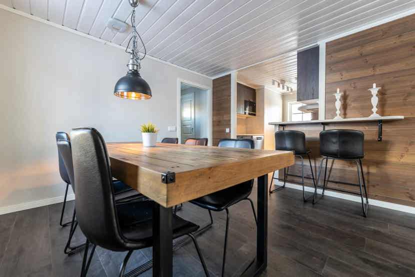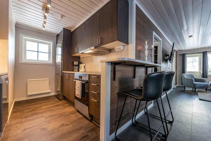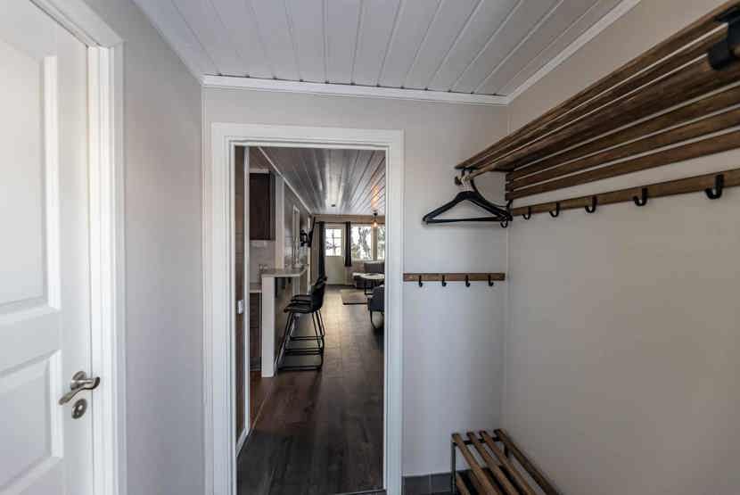 Opholdsstue med køkkenafdeling. TV, brændeovn (brænde indgår ikke), altan (skovles ikke), tørreskab, rum til skiudstyr.
