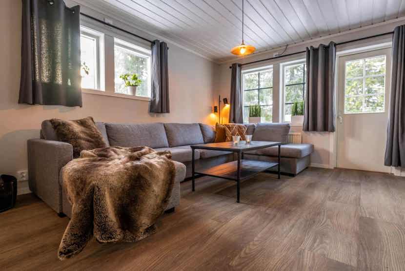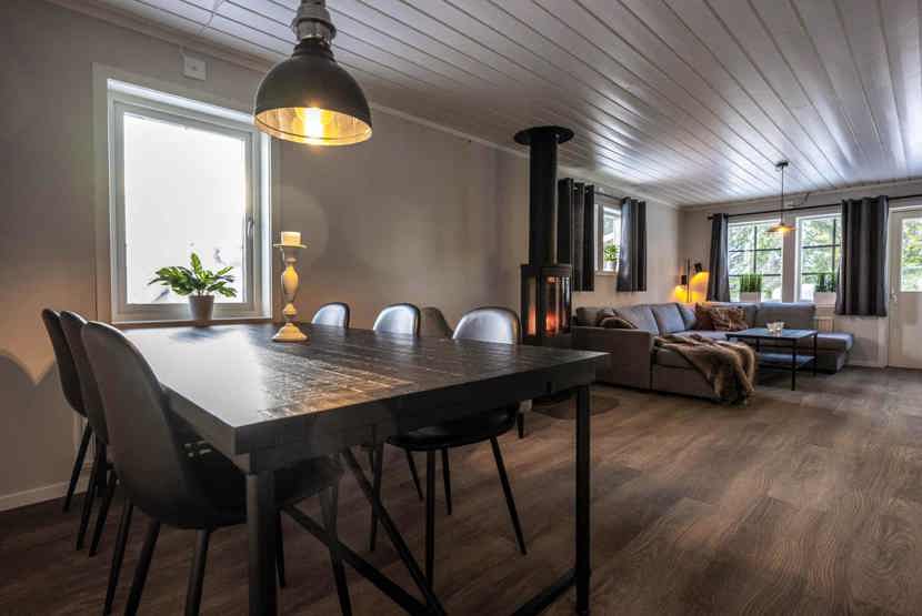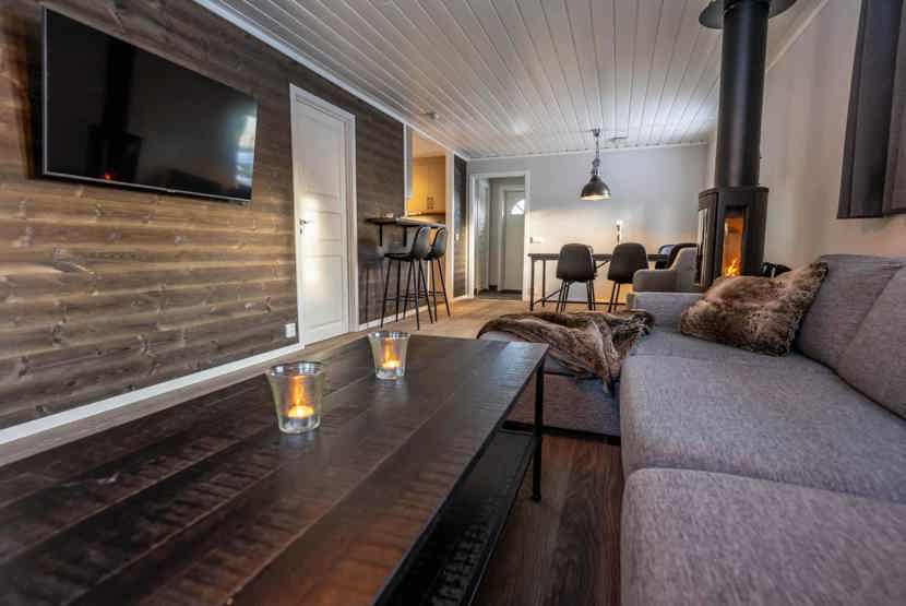 Opholdsstue med køkkenafdeling. TV, brændeovn (brænde indgår ikke), altan (skovles ikke), tørreskab, rum til skiudstyr.
