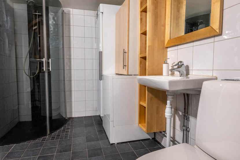 Opholdsstue med køkkenafdeling. TV, tørreskab, rum til skiudstyr, altan (skovles ikke).