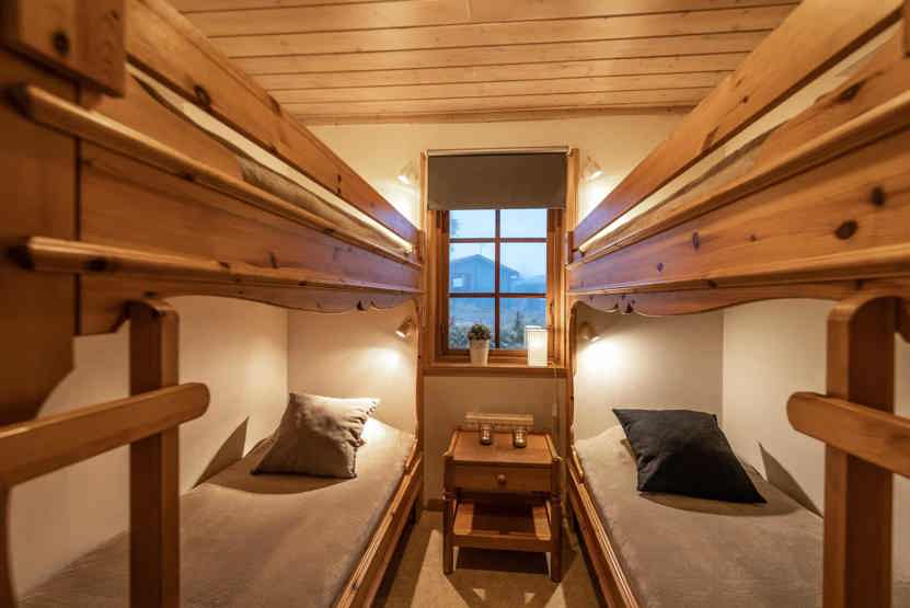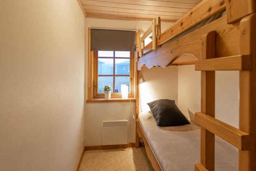 Soveværelse-1= 2 køjesenge. Soveværelse-3= 1 køjeseng 75 cm bred x 200 cm lang, 1 enkeltseng.