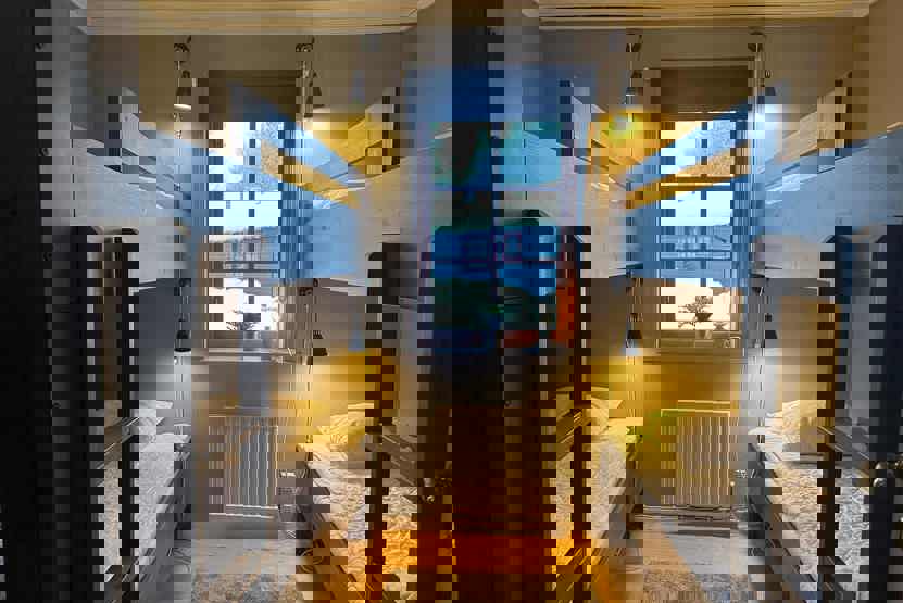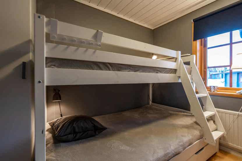 Soveværelse-1= 1 køjeseng med 120 cm bred underkøje . Soveværelse-2= 2 køjesenge.