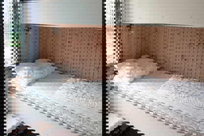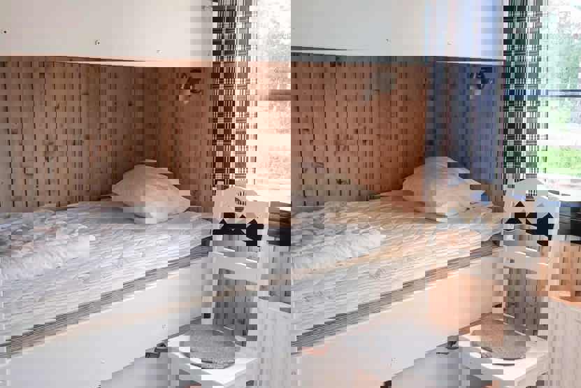 Soveværelse-1= 1 køjeseng med 120 cm bred underkøje . Soveværelse-2= 1 køjeseng.