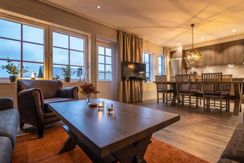 TV, brændeovn (brænde indgår ikke), vaskemaskine, tørretumbler, tørreskab, udtag til motorvarmer til bilen forefindes. Kræver specielt stik i bilen, rum til skiudstyr.