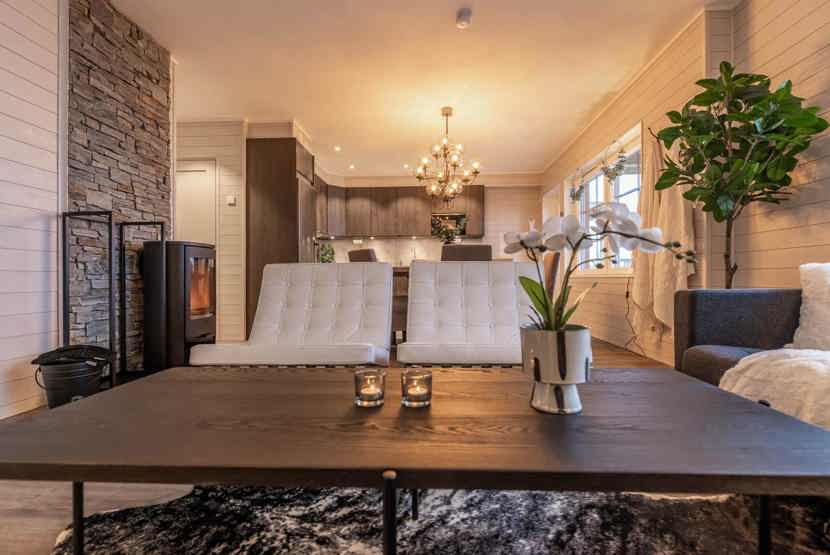 TV, brændeovn (brænde indgår ikke), vaskemaskine, tørretumbler, tørreskab, rum til skiudstyr.