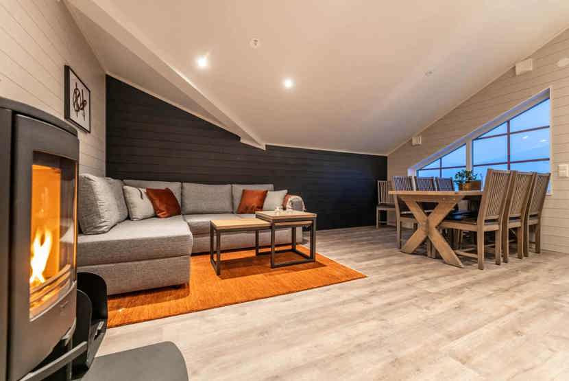TV, brændeovn (brænde indgår ikke), vaskemaskine, tørretumbler, tørreskab, balkon, udtag til motorvarmer til bilen forefindes. Kræver specielt stik i bilen, rum til skiudstyr.