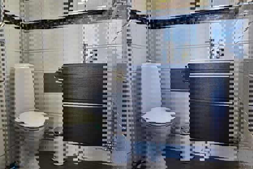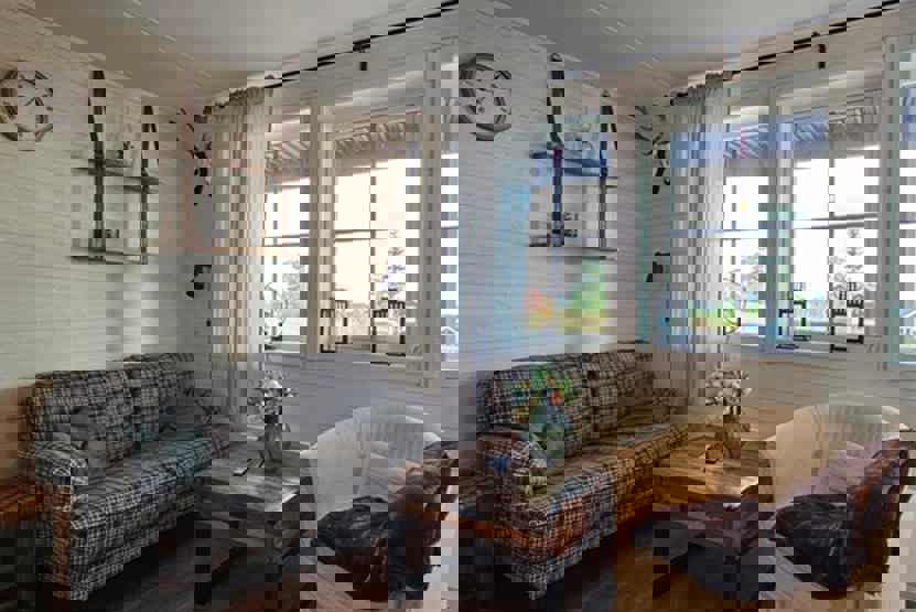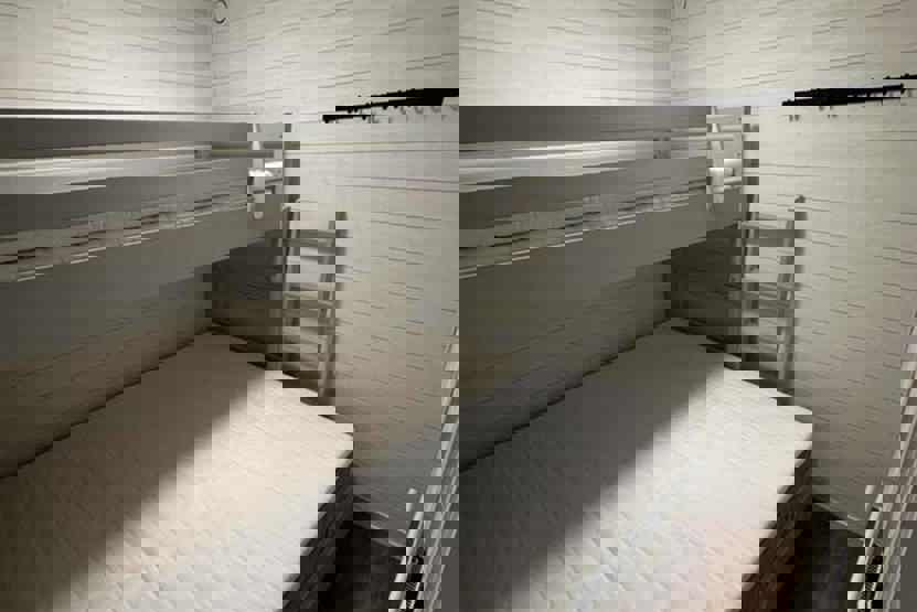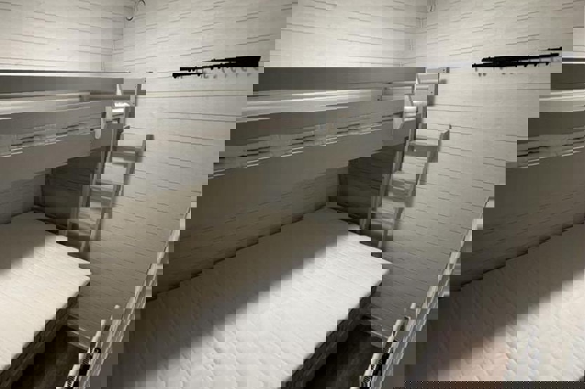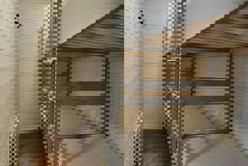 Soveværelse-1= 2 køjesenge hvor både over og underkøje er 80 cm bred, i værelse uden vindue. Soveværelse-2= 1 køjeseng med 160 cm bred underkøje , i værelse uden vindue.
