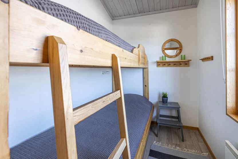 Soveværelse-1= 1 køjeseng. Soveværelse-2= 1 dobbeltseng. Soveværelse-3= 1 køjeseng. Hems 1= 2 enkeltsenge.