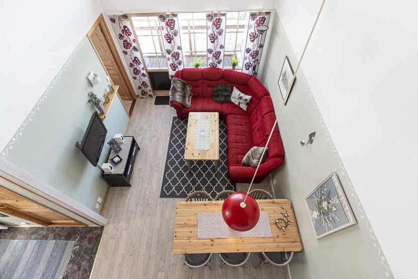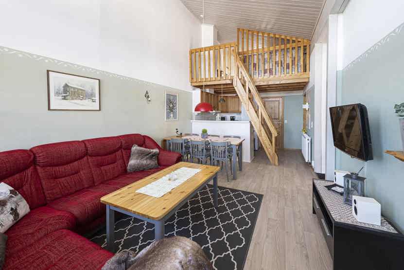 Opholdsstue med køkkenafdeling. TV, altan (skovles ikke), tørreskab, rum til skiudstyr, adgang til elbilopladere med type 2 stik mod betaling.