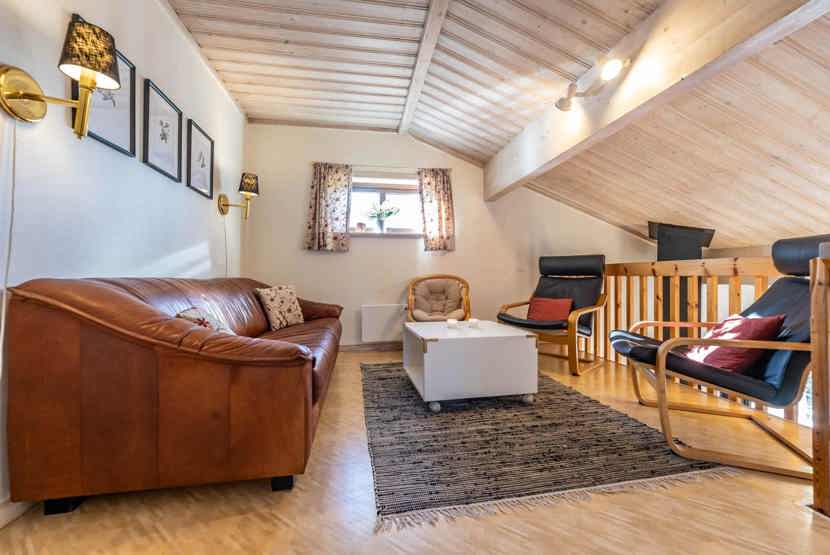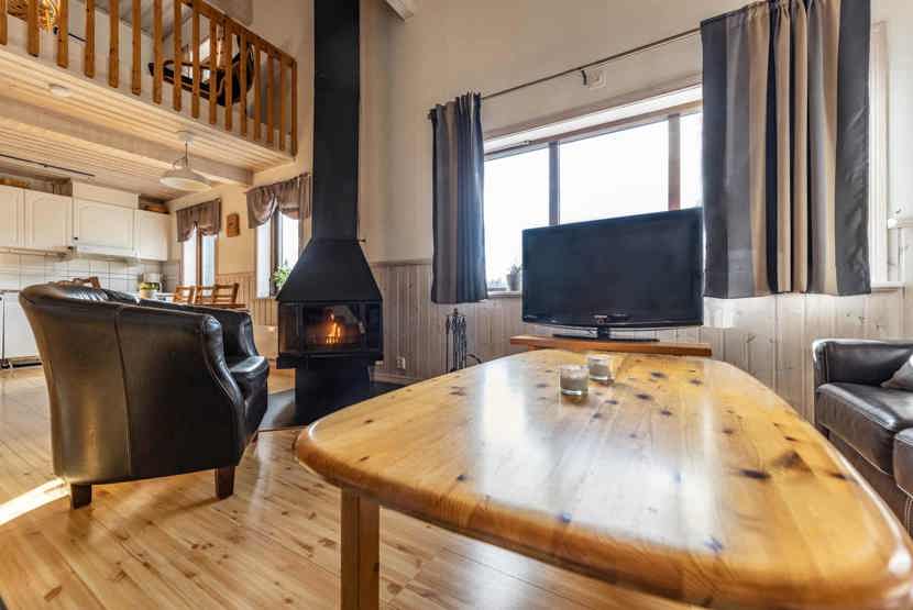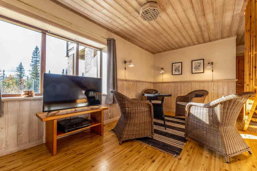 2 opholdsstue hvoraf 1 med køkkenafdeling,TV, brændeovn (brænde indgår ikke), altan (skovles ikke), rum til skiudstyr, tørreskab, udtag til motorvarmer til bilen forefindes. Kræver specielt stik i bilen.