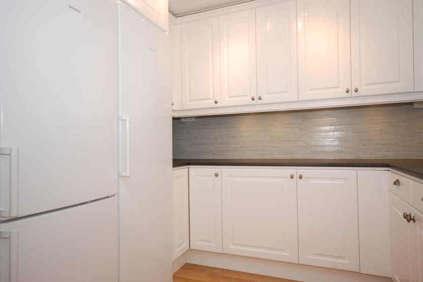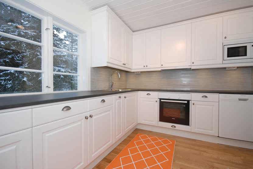 Køkkenet indeholder: keramiske kogeplader, indbygningsovn, 2 st køleskab, 355 l og 221 l, frys, opvaskemaskine, microovn, køleskab og fryser er også uden realxavdelningen.