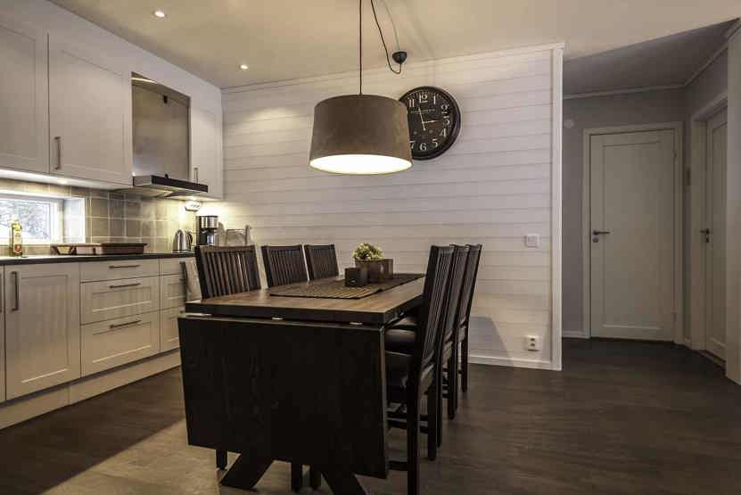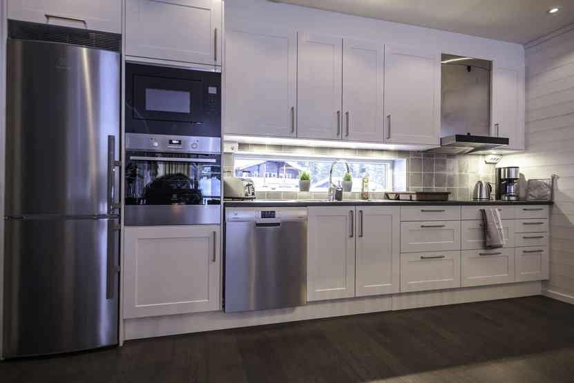 Køkkenet indeholder: keramiske kogeplader, indbygningsovn, køleskab, frys, opvaskemaskine, microovn.