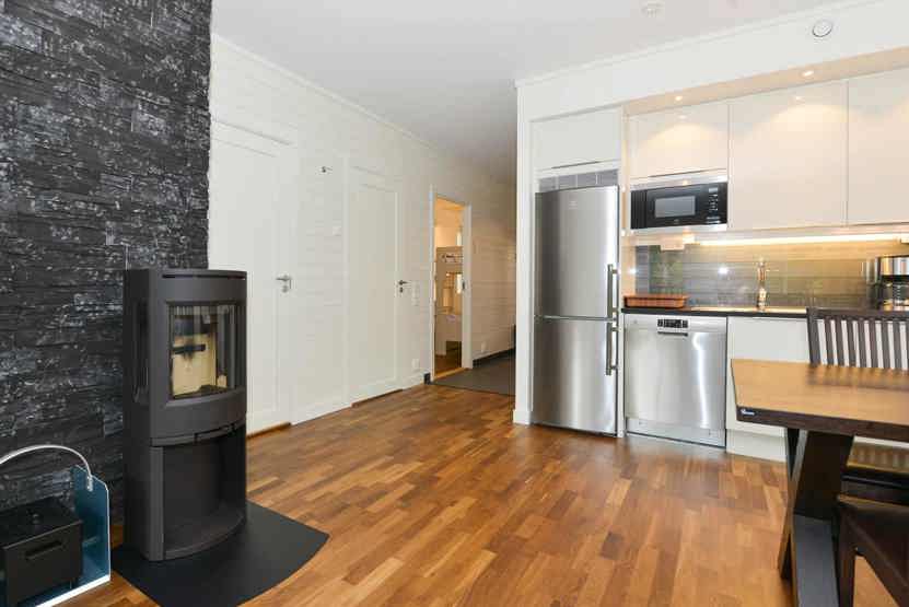 TV, brændeovn (brænde indgår ikke), kombineret vaskemaskine/tørretumbler, tørreskab, strygejern, altan (skovles ikke), rum til skiudstyr, udtag til motorvarmer til bilen findes ved P-pladsen. Kræver specielt stik i bilen.