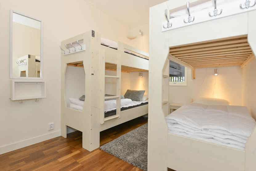 Soveværelse-1= 1 dobbeltseng. Soveværelse-2= 1 dobbeltseng. Soveværelse-3= 2 køjesenge 80 cm bred.