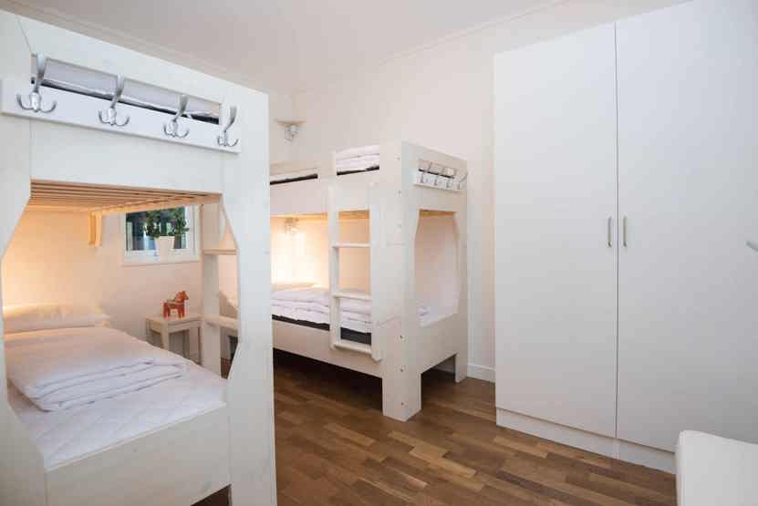 Soveværelse-1= 1 dobbeltseng. Soveværelse-2= 1 dobbeltseng. Soveværelse-3= 2 køjesenge 80 cm bred.