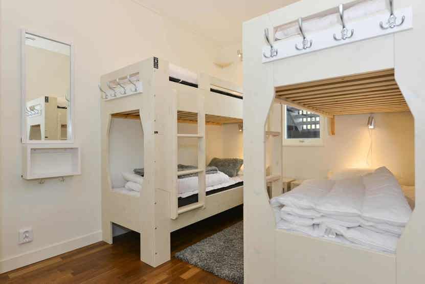 Soveværelse-1= 1 dobbeltseng. Soveværelse-2= 1 dobbeltseng. Soveværelse-3= 2 køjesenge 80 cm bred.