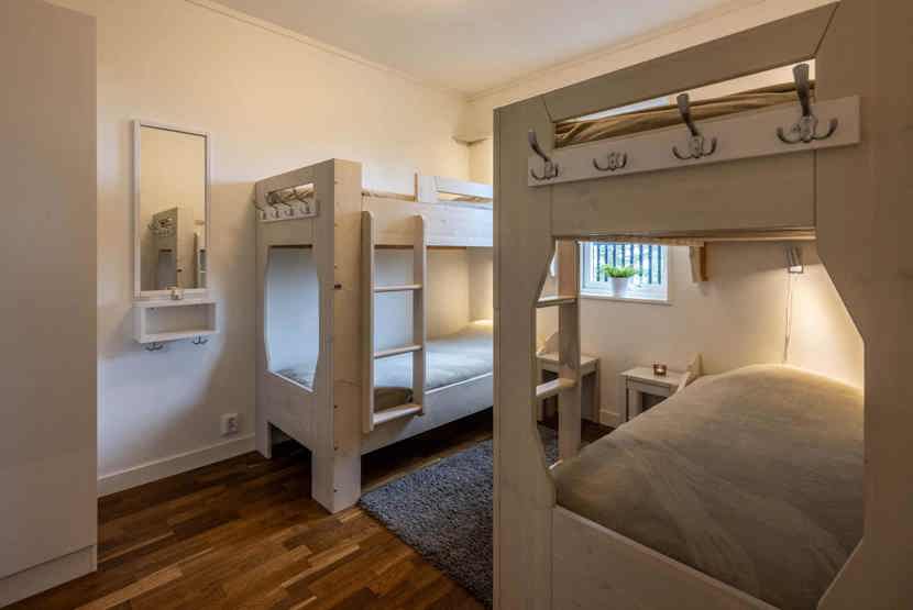 Soveværelse-1= 1 dobbeltseng 180 cm bred. Soveværelse-2= 2 køjesenge 80 cm bred. Soveværelse-3= 2 køjesenge 80 cm bred.