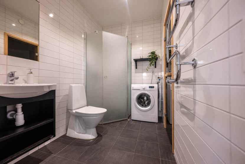 Badeværelset-1 = bruse/wc/sauna. Badeværelset-2 = wc.