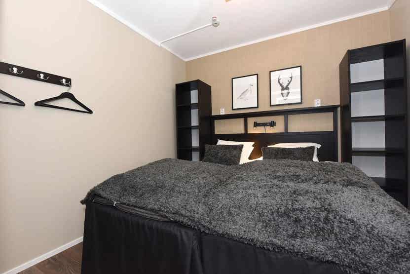 Soveværelse-1= 1 dobbeltseng. Soveværelse-2= 2 køjesenge 80 cm bred.