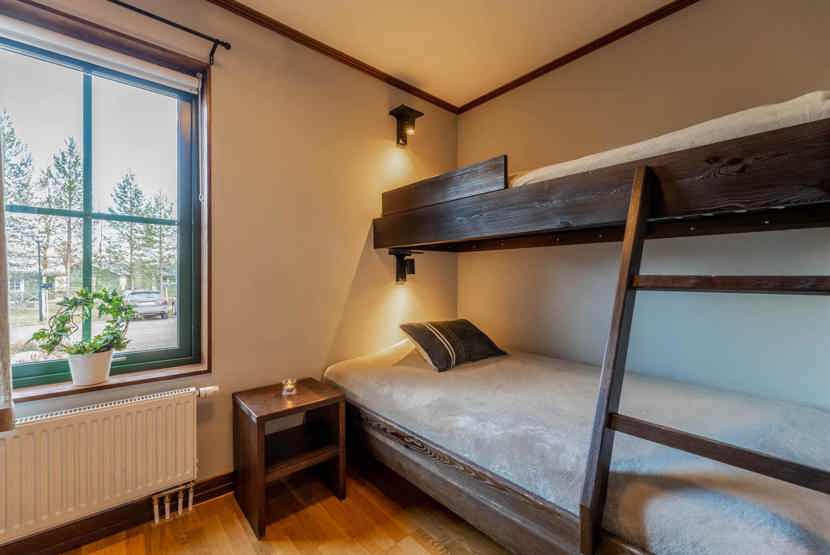 Soveværelse-1= 1 dobbeltseng som kan laves om til to enkeltsenge. Soveværelse-2= 1 køjeseng med 120 cm bred underkøje .