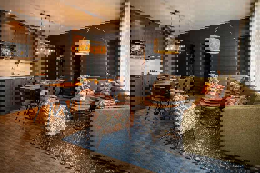 Opholdsstue med køkkenafdeling.