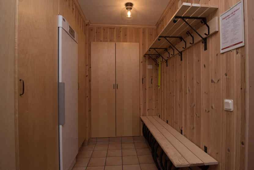 Opholdsstue med køkkenafdeling. TV, tørreskab, rum til skiudstyr.