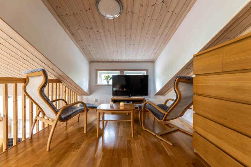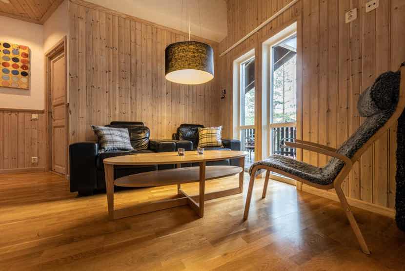 TV, brændeovn (brænde indgår ikke), 1 højstol, 1 barneseng, tørreskab, rum til skiudstyr, balkon.
