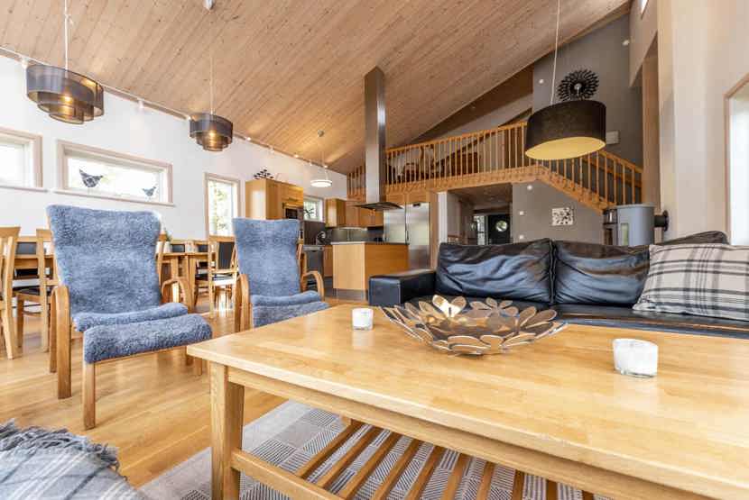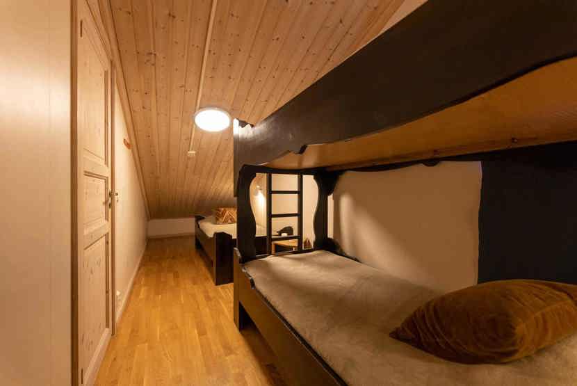 Soveværelse-1= 1 dobbeltseng med justerbare madrasser. Soveværelse-2= 1 dobbeltseng med justerbare madrasser. Soveværelse-3= 1 køjeseng, 1 køjeseng med 160 cm bred underkøje og 90 cm bred overkøje . Soveværelse-4= 1 køjeseng, 1 enkeltseng.