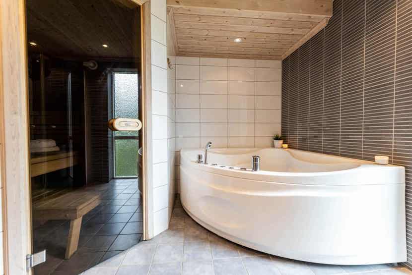 Badeværelset-1 = jacuzzi, bruse/wc/sauna. Badeværelset-2 = bruse/wc. Badeværelset-3 = wc.
