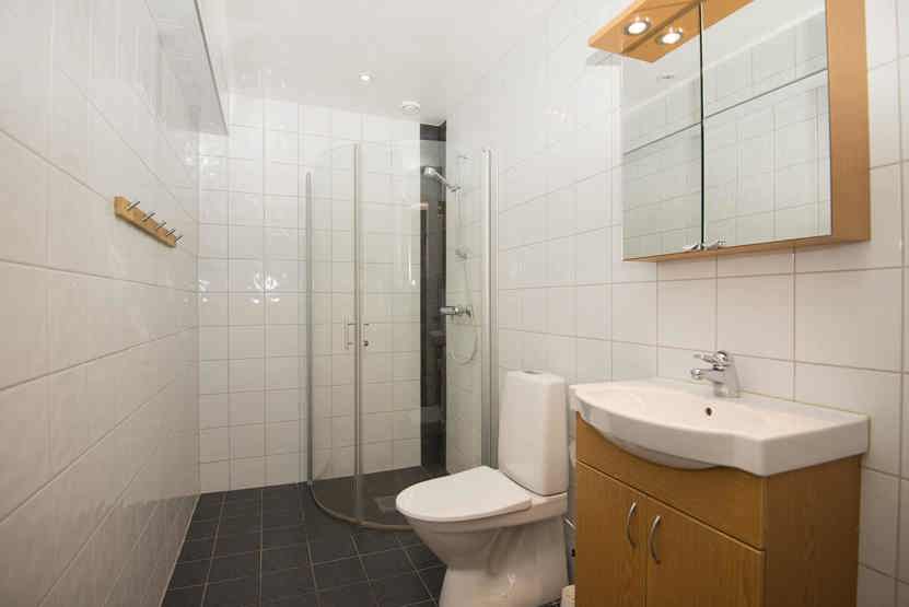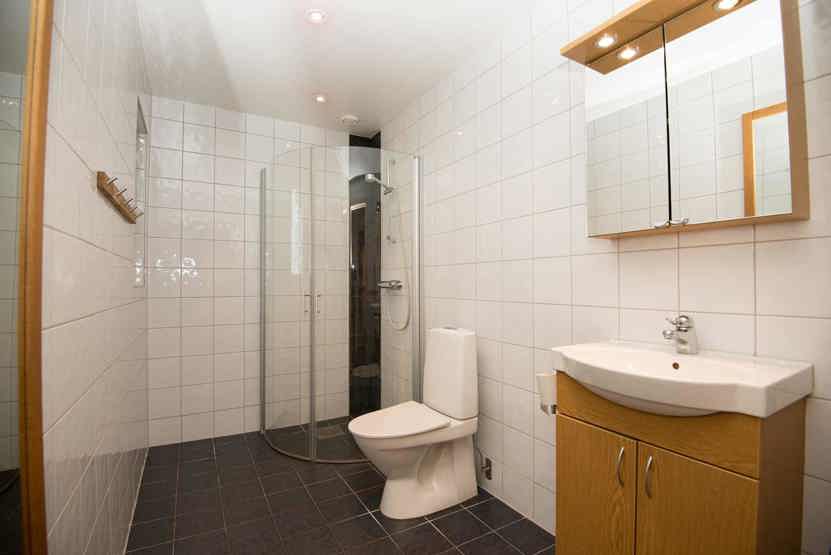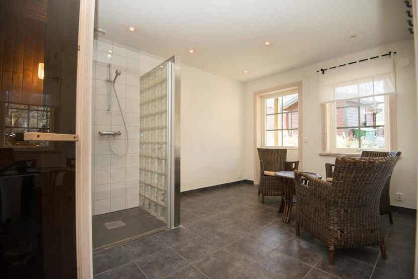 Badeværelset-1 = 1 bruse/wc. Badeværelset-2 = 1 bruse/wc. Badeværelset-3 = 1 bruse/sauna med relax.