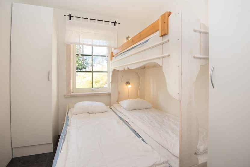 Soveværelse-1= 1 dobbeltseng. Soveværelse-2= 2 køjesenge. Soveværelse-3= 2 køjesenge. Soveværelse-4= 1 køjeseng med 140 cm bred underkøje .