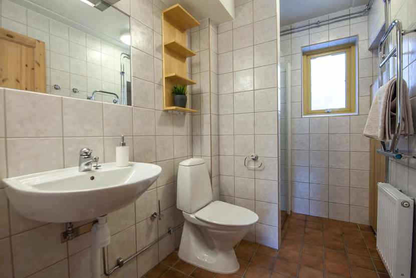 Badeværelset-1 = bruse/wc/sauna. Badeværelset-2 = bruse/wc.