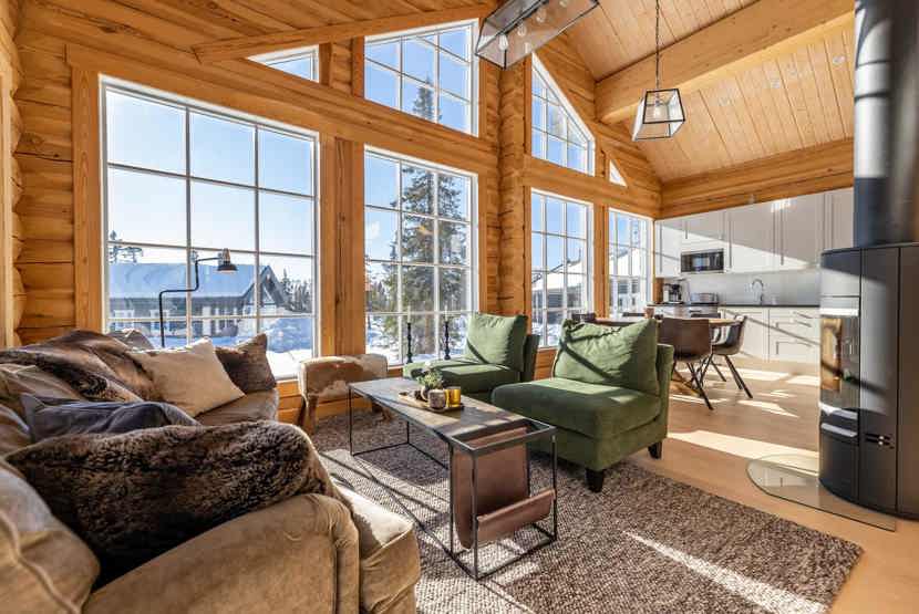 TV, brændeovn (brænde indgår ikke), tørreskab, vaskemaskine, tørretumbler, rum til skiudstyr, (Jacuzzien er kun til privat brug og indgår ikke i den formidlede bolig.), altan (skovles ikke).