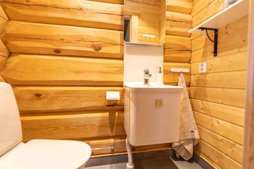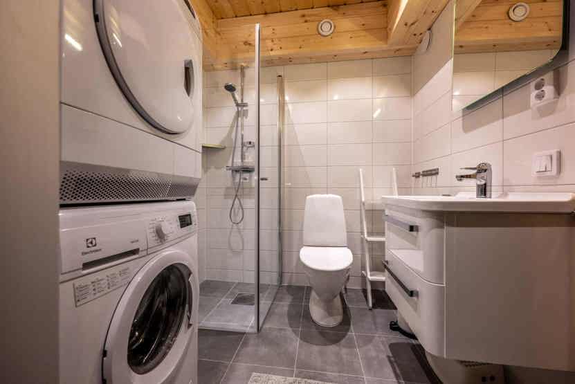 Badeværelset-1 = bruse/wc/sauna. Badeværelset-2 = wc.
