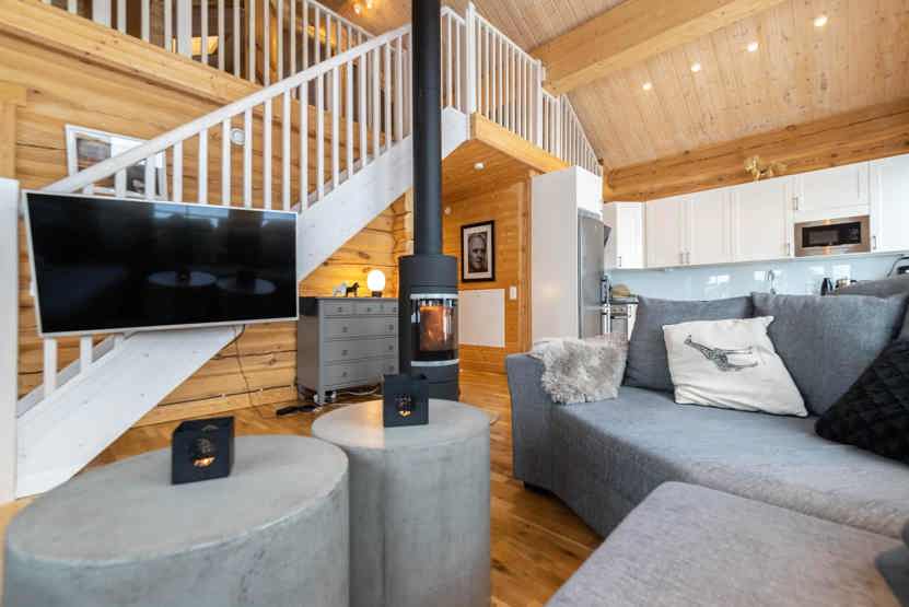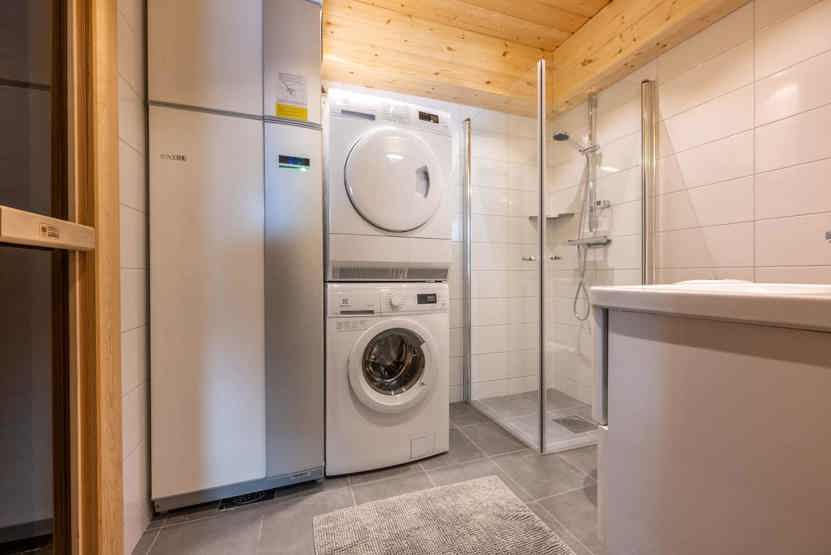TV, 1 barneseng, 2 højstole, brændeovn (brænde indgår ikke), tørreskab, vaskemaskine, tørretumbler, altan (skovles ikke), (Jacuzzien er kun til privat brug og indgår ikke i den formidlede bolig.), rum til skiudstyr.