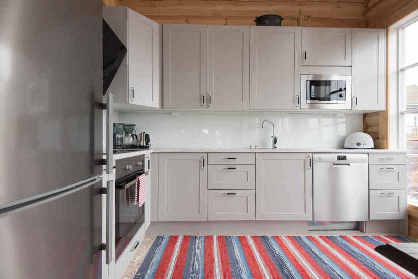 Køkkenet indeholder: keramiske kogeplader, indbygningsovn, køleskab, frys, opvaskemaskine, microovn.