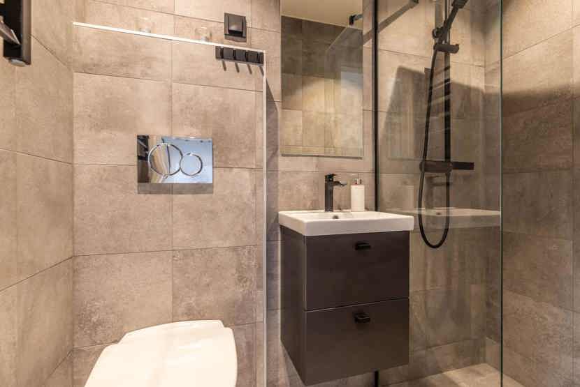 Badeværelset-1 = bruse/wc/sauna. Badeværelset-2 = bruse/wc.