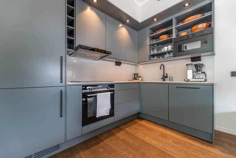 Køkkenet indeholder: keramiske kogeplader med ovn, køleskab, frys, opvaskemaskine, microovn.