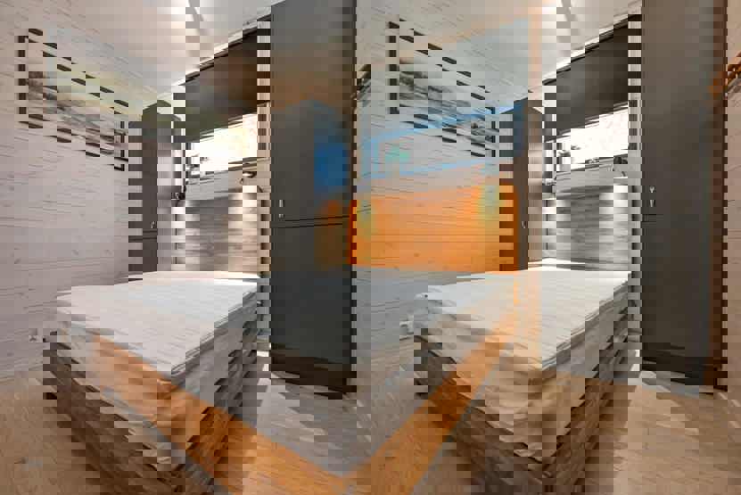 Soveværelse-1= 1 dobbeltseng 160 cm bred. Soveværelse-2= 1 køjeseng hvor både over og underkøje er 90 cm bred. Soveværelse-3= 1 køjeseng hvor både over og underkøje er 90 cm bred. Soveværelse-4= 1 dobbeltseng 160 cm bred.