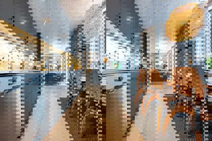 Køkkenet indeholder: keramiske kogeplader med ovn, køleskab, frys, opvaskemaskine, microovn.