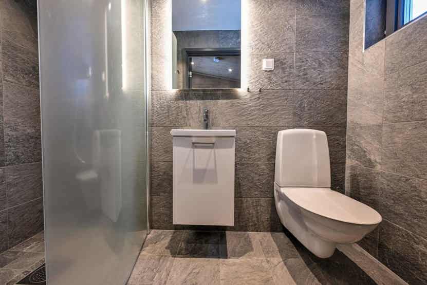 Badeværelset-1 = bruse/wc/sauna. Badeværelset-2 = bruse/wc.