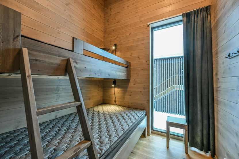 Soveværelse-1= 1 dobbeltseng 180 cm bred. Soveværelse-2= 1 dobbeltseng 160 cm bred. Soveværelse-3= 1 køyeseng med 120 cm bred underkøye og 80 cm bred overkøye. Soveværelse-4= 1 køjeseng hvor både over og underkøje er 90 cm bred.