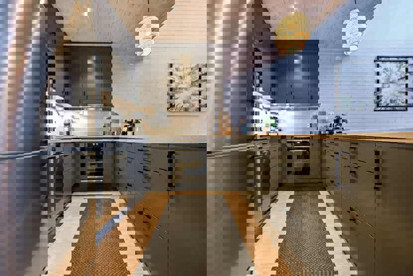 Køkkenet indeholder: keramiske kogeplader med ovn, køleskab, frys, opvaskemaskine, microovn.