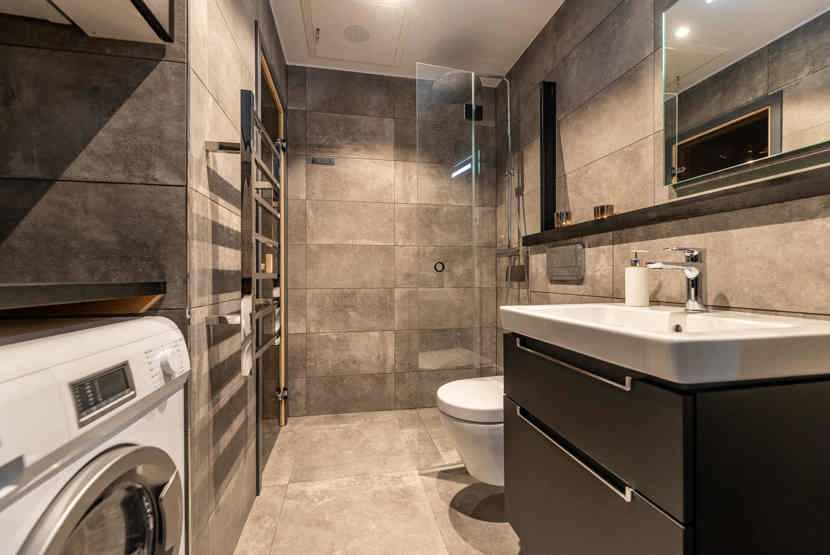 Badeværelset-1 = bruse/wc/sauna. Badeværelset-2 = bruse/wc.