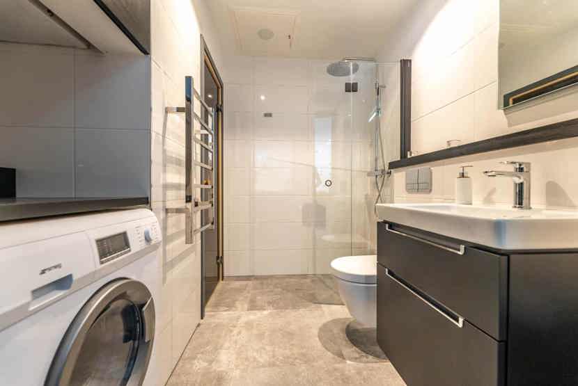 Badeværelset-1 = bruse/wc/sauna. Badeværelset-2 = bruse/wc.