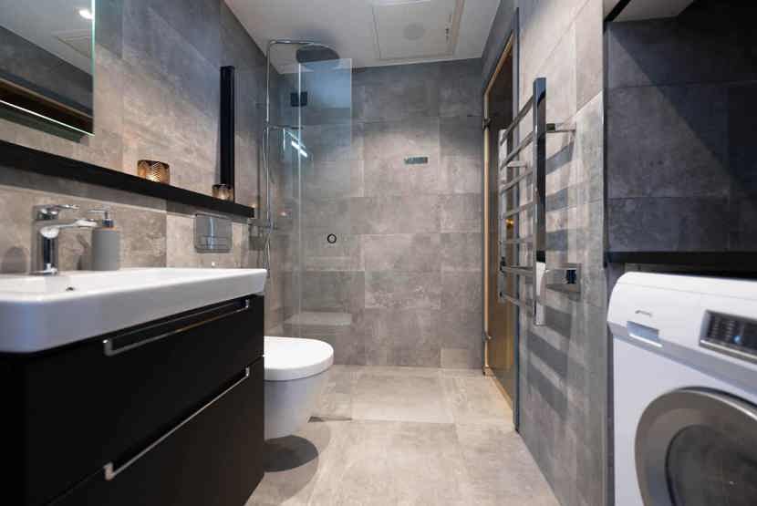 Badeværelset-1 = bruse/wc/sauna. Badeværelset-2 = bruse/wc.