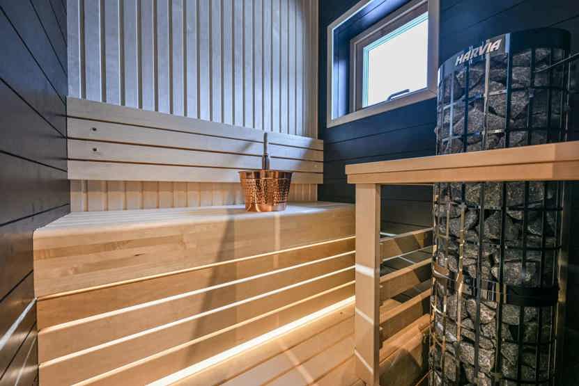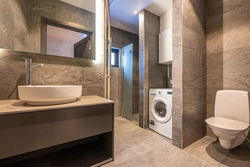 Badeværelset-1 = bruse/wc/sauna. Badeværelset-2 = bruse/wc.