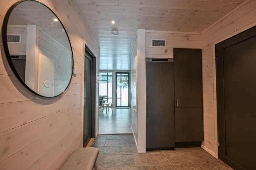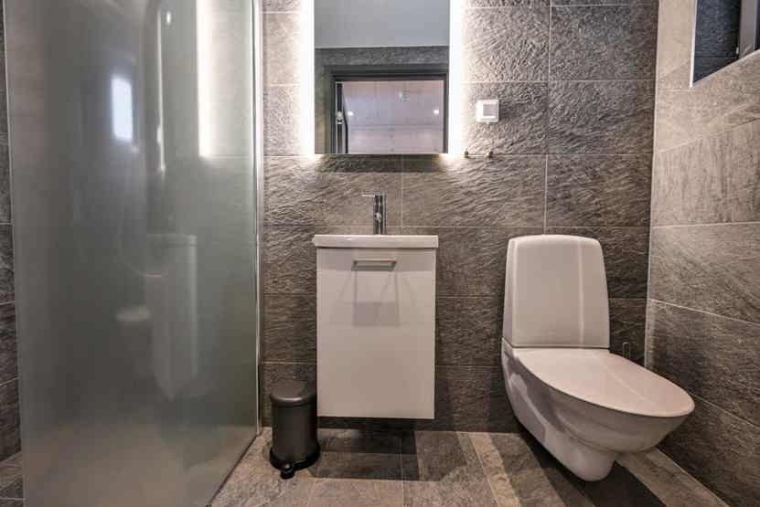 Badeværelset-1 = bruse/wc/sauna. Badeværelset-2 = bruse/wc.