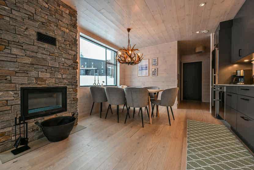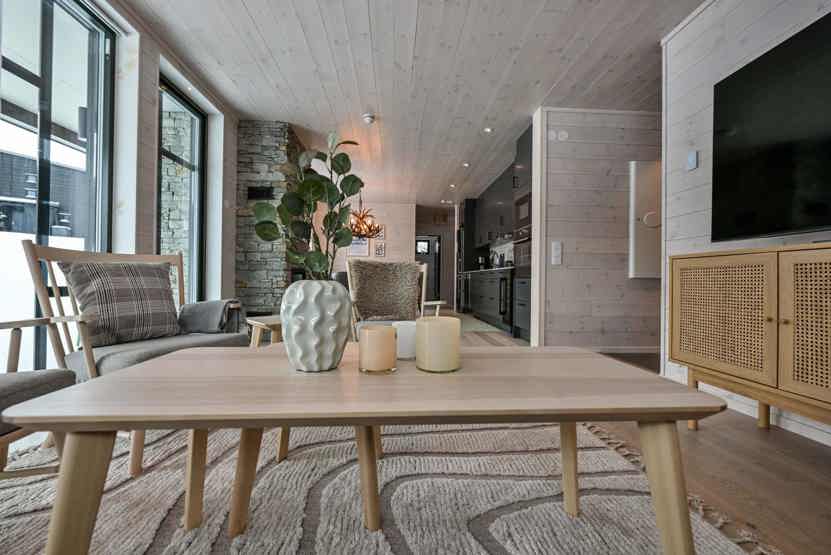 TV, brændeovn (brænde indgår ikke), tørreskab, kombineret vaskemaskine/tørretumbler, altan (skovles ikke), rum til skiudstyr, 2 parkeringspladser, adgang til elbilopladere med type 2 stik mod betaling.