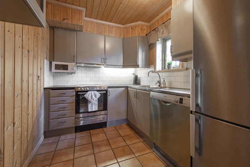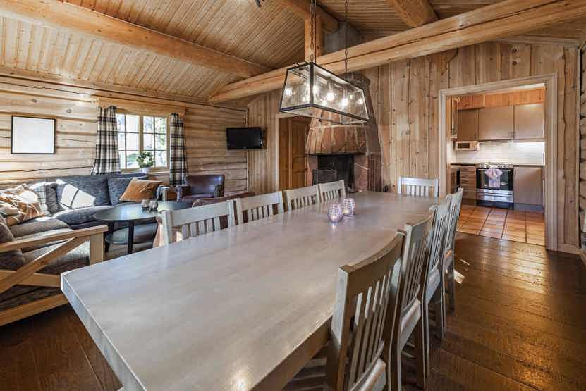 Opholdsstue med køkkenafdeling. TV, tørreskab, åben pejs (brænde indgår ikke), rum til skiudstyr, 1 barneseng, 1 højstol.