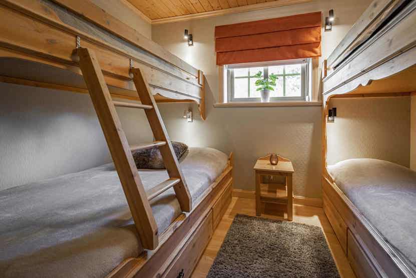 Soveværelse-1= 1 dobbeltseng. Soveværelse-2= 1 køjeseng. Soveværelse-3= 1 køjeseng. Soveværelse-4= 1 køjeseng, 1 køjeseng.